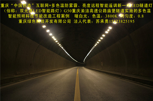 In September 2013, the Chongqing municipal government's support, I Division in the Chongqing District of Yuzhong City lawn Yuanjiagang tunnel, eling tunnel, Jiulongpo chenjiaping tunnel under the application of the technology. Chongqing City Lighting Management Bureau and Jiulongpo District of Chongqing City Street Management Office of tunnel engineering test on lawn Yuanjiagang, compared with the corresponding replacement of the original lamp, energy saving rate of 70.5%. The use of this technology in two years time, Chongqing Academy of Metrology and quality inspection in accordance with the "city road lighting design standards" CJJ45-2006 "and" GB/T5700-2008< > lighting measurement method for testing, the results meet the standard, and the technical indicators are better than ordinary monochromatic temperature LED lamp. The technology in the G50 of Chongqing Chongqing Fuling Expressway in Tieshan, Huashan, Huang Caoshan, Ping Village, concentric Fort Temple tunnel, Jiulongpo Shi Xin Lu, Shiping bridge tunnel, Yuzhong Caiyan, Nan'an District longhuang tunnel, wind road, the wind goose branch, tea residue field road, Yingbin Avenue in Fengdu County, Han Chongqing area Shapingba road tunnel, Fuling District poly Yunshan tunnel, Yunyang Qunyi, Wangjiang tunnel hundredthe