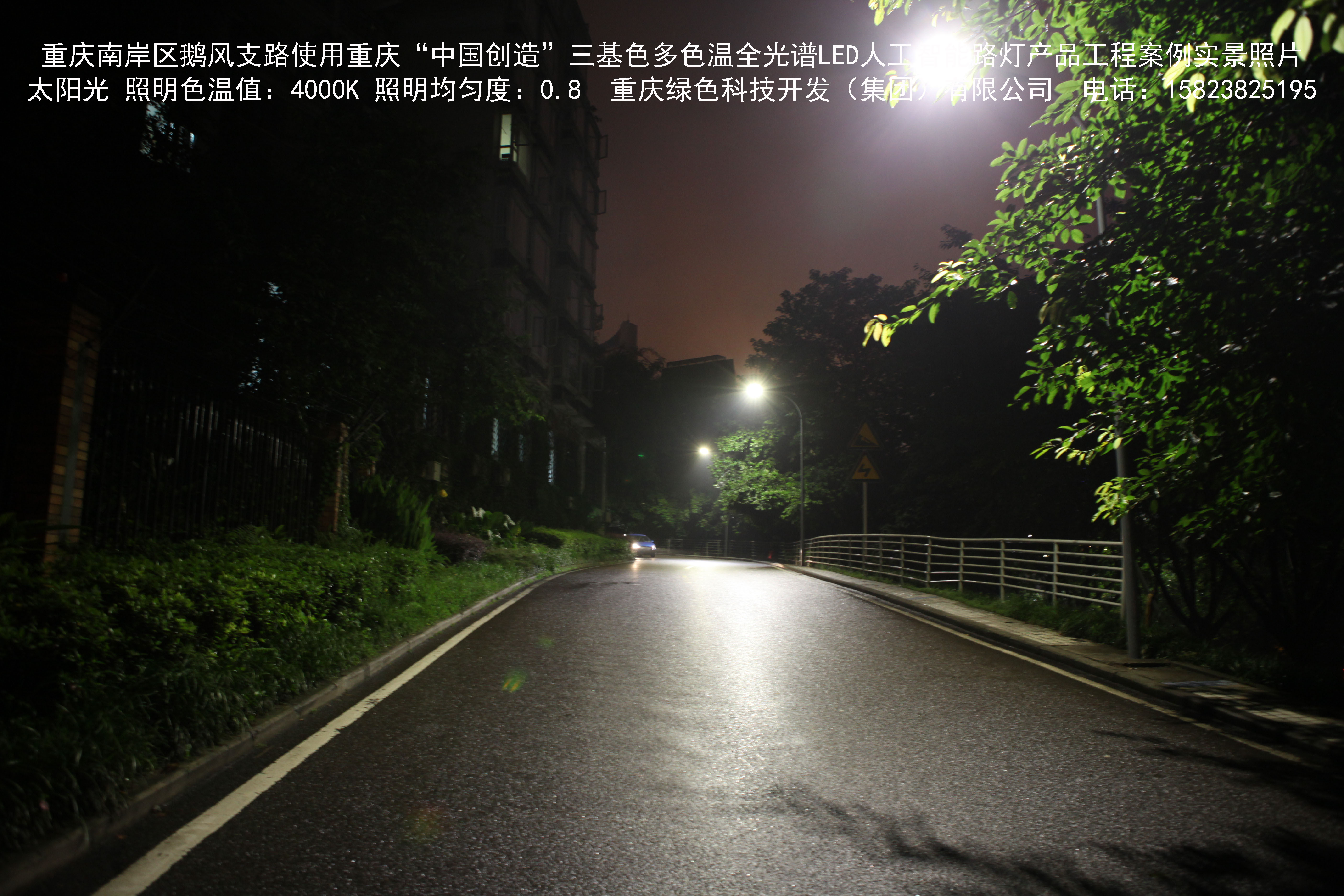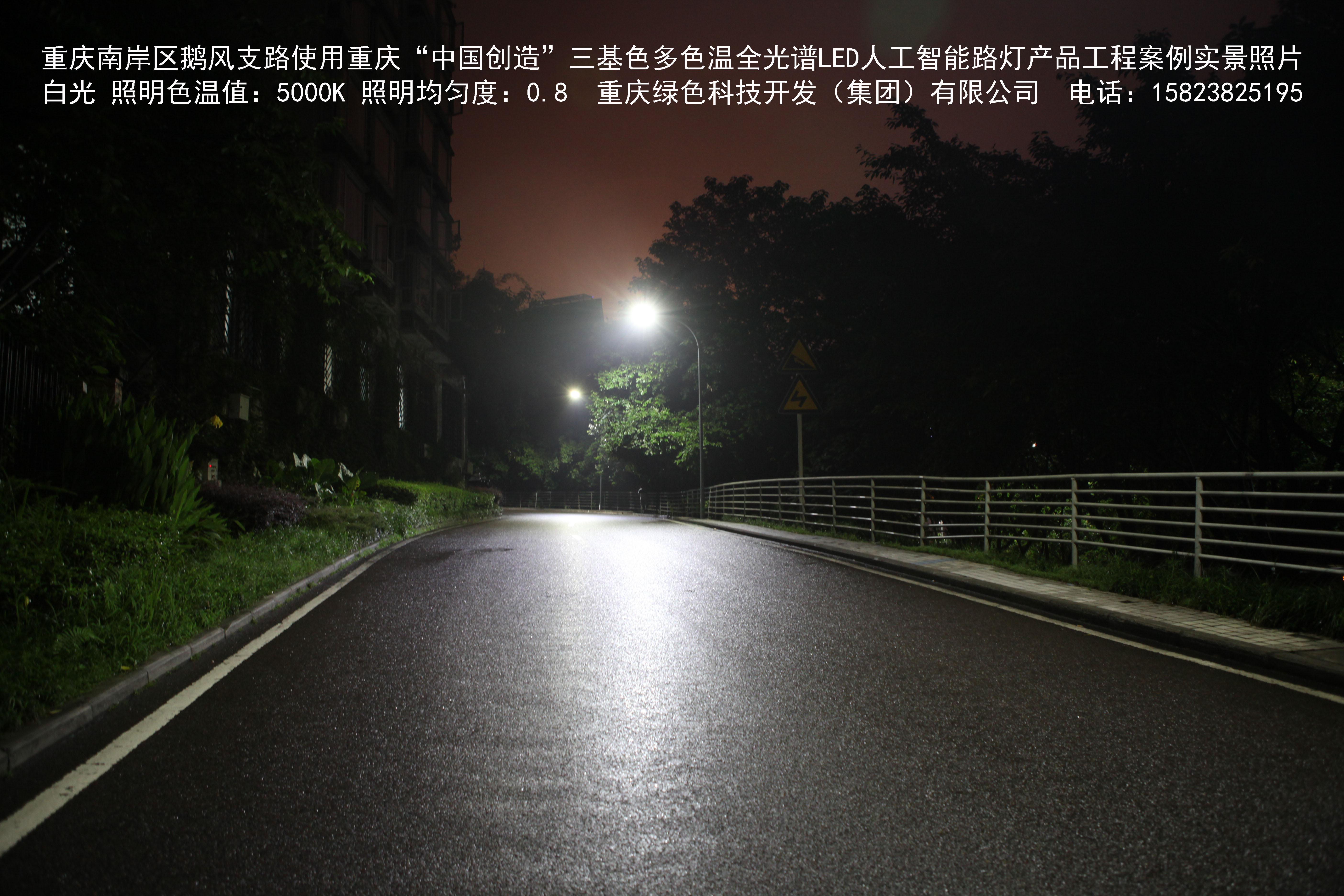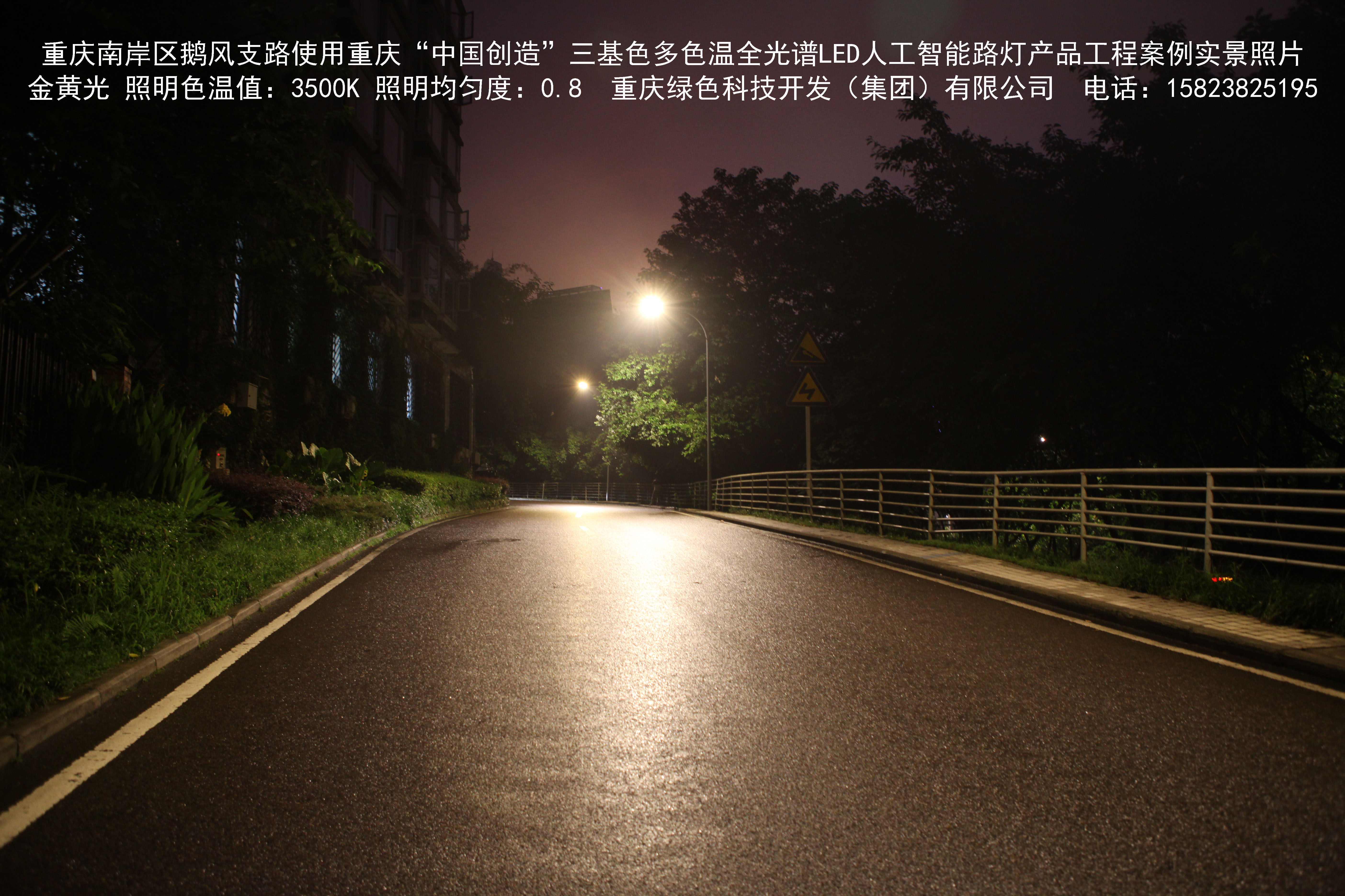 重慶市南岸區(qū)鵝風(fēng)支路使用我司研造的重慶“中國創(chuàng)造”三基色多色溫全光譜LED人工智能路燈產(chǎn)品工程案例