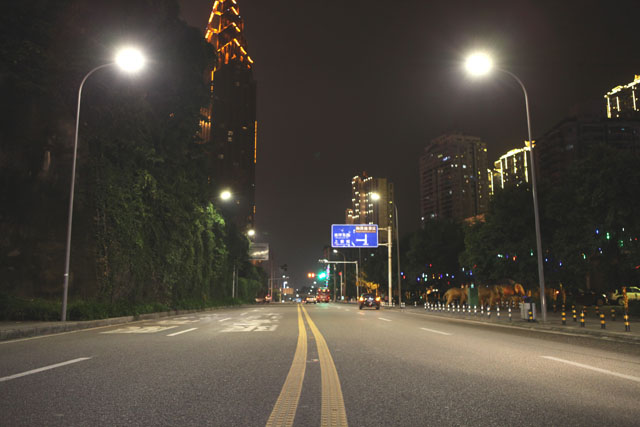 重慶市南岸區(qū)風(fēng)臨路使用重慶“中國創(chuàng)造”世界領(lǐng)先物聯(lián)網(wǎng)多色溫防霧霾LED人工智能路燈