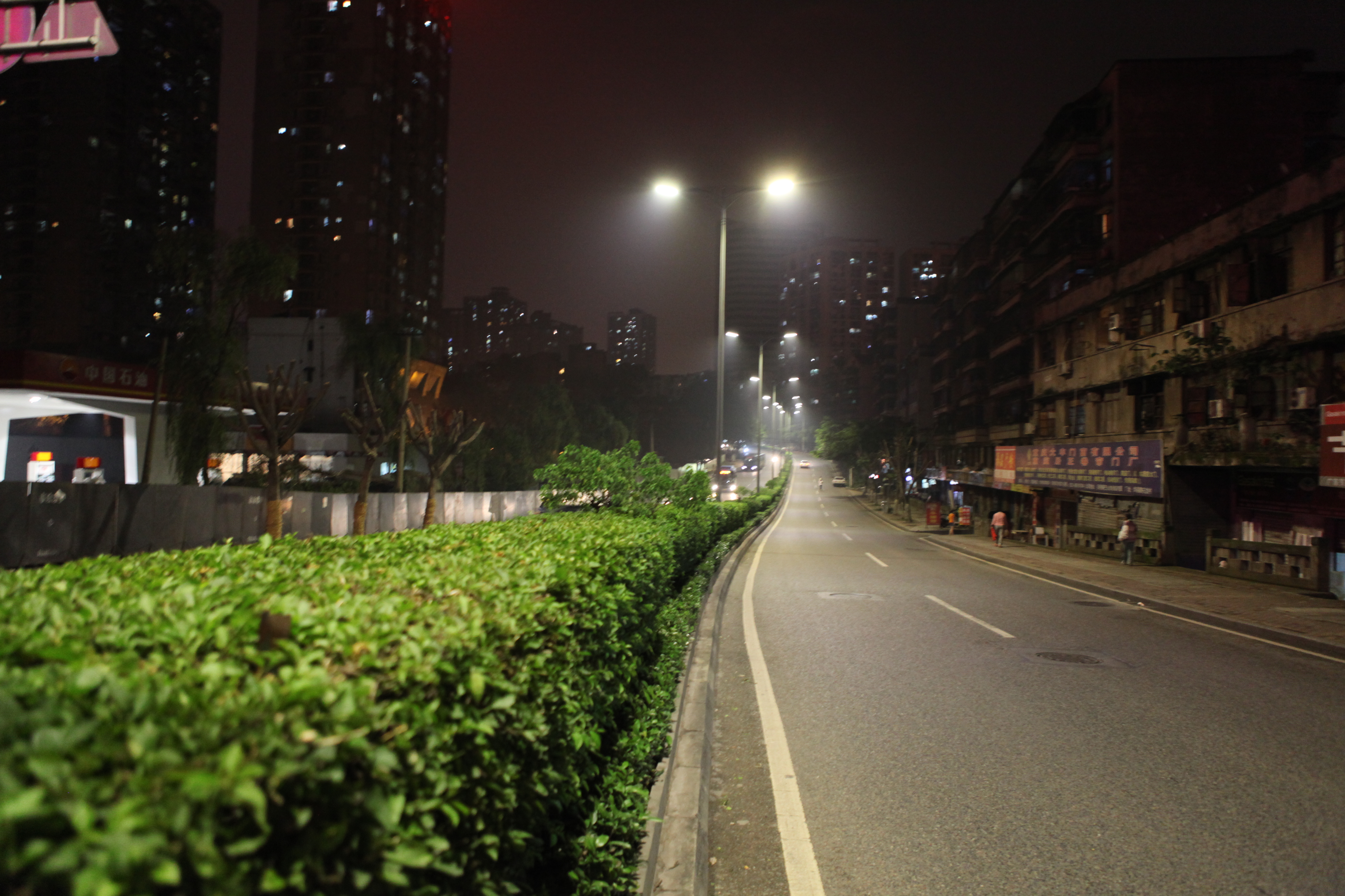 重慶市南岸區(qū)鵝風(fēng)支路使用重慶“中國創(chuàng)造”世界領(lǐng)先物聯(lián)網(wǎng)多色溫防霧霾LED人工智能路燈